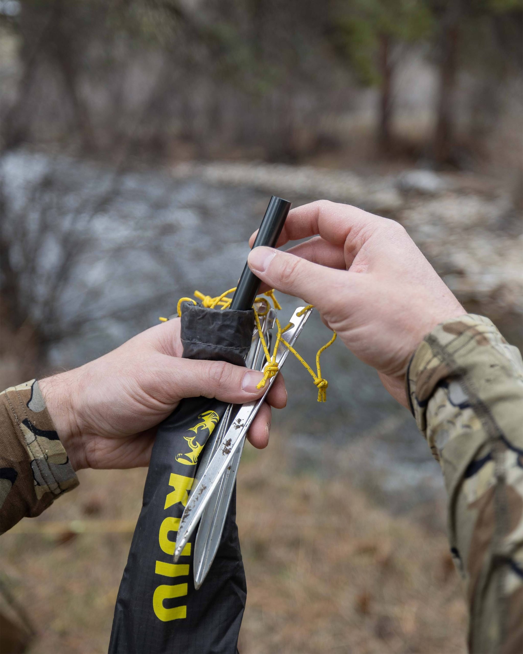 This tent is built with dual entries and will comfortably sleep up to three people. or two people with full sets of gear. We factored in ample head room and an asymmetric floor shape for comfortable shoulder to shoulder sleeping. The interior of the tent features eight internal storage pockets. two built-in clotheslines and webbing loops for drying or stowing gear.